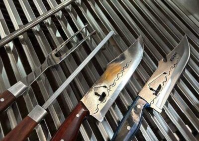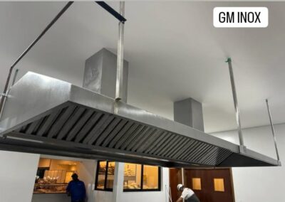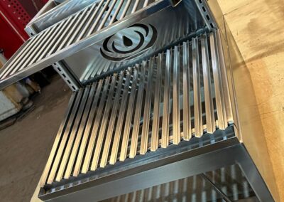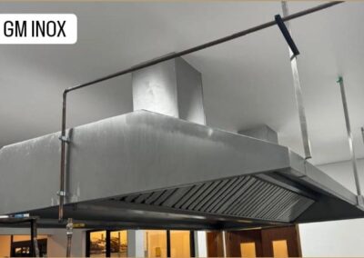Churrasqueiras, coifas, grelhas e ralos em aço inoxidável.